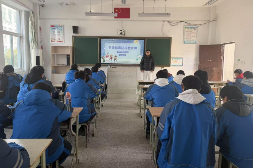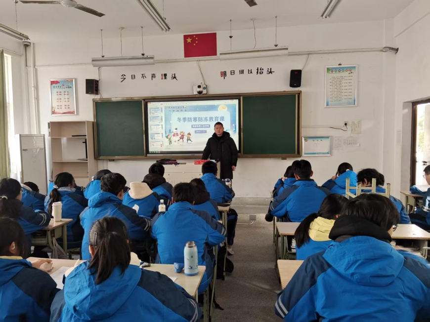 为做好冬季寒潮天气期间学生安全健康工作,1月21日班会课,政教处组织各班开展冬季学生防冻防寒安全教育课活动。各班级班主任围绕学生保暖放冻伤、上放学骑车防摔倒、晚间睡觉防着凉、课间嬉戏打闹防跌伤等内容开展专项提醒和要求。
