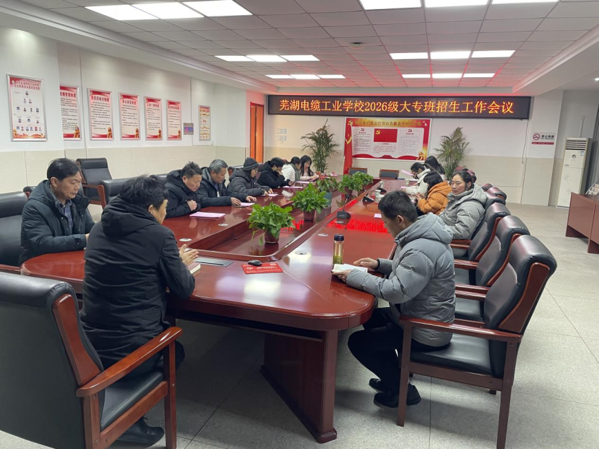 1月22日,学校组织召开2026级高职班招生工作会议,2026届全体班主任参会。会议由招生就业处主任艾学保主持,副主任李年书首先通报了本届毕业班相关情况,随后对高职班进行解读,并就招生工作作出详细部署。最后,学校党总支副书记、校长钱易明对此次高职班招生工作提出三点要求。