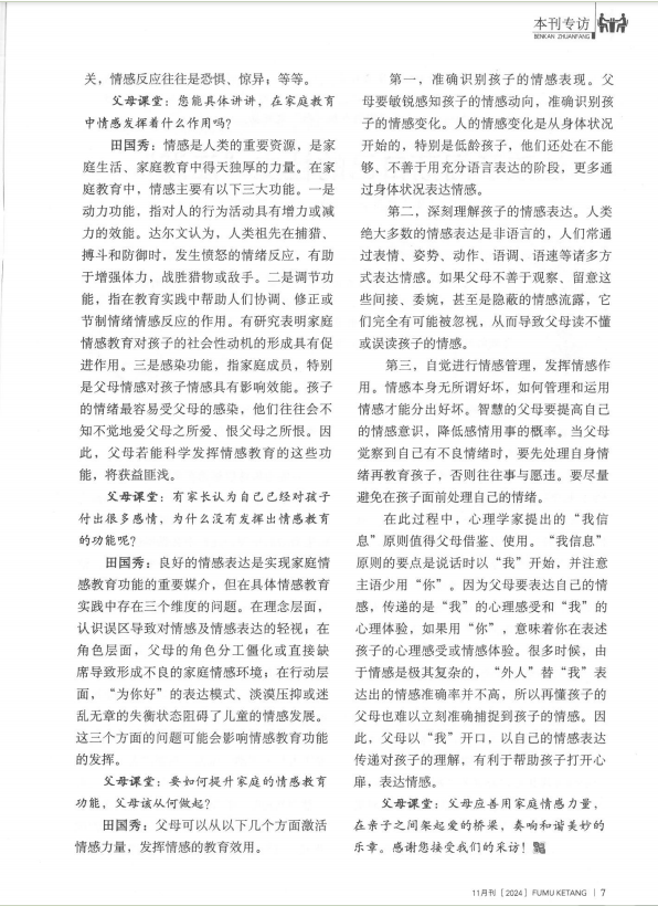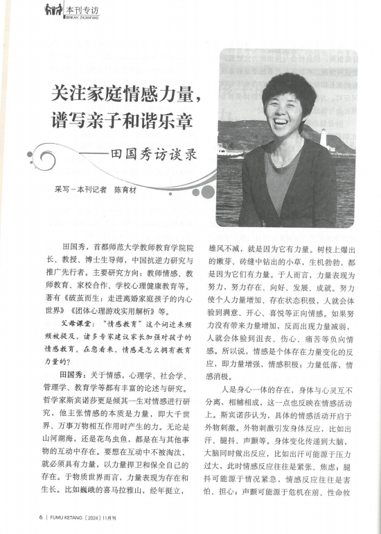 题目:《关注家庭情感力量,谱写亲子和谐乐章--田国秀访谈录》