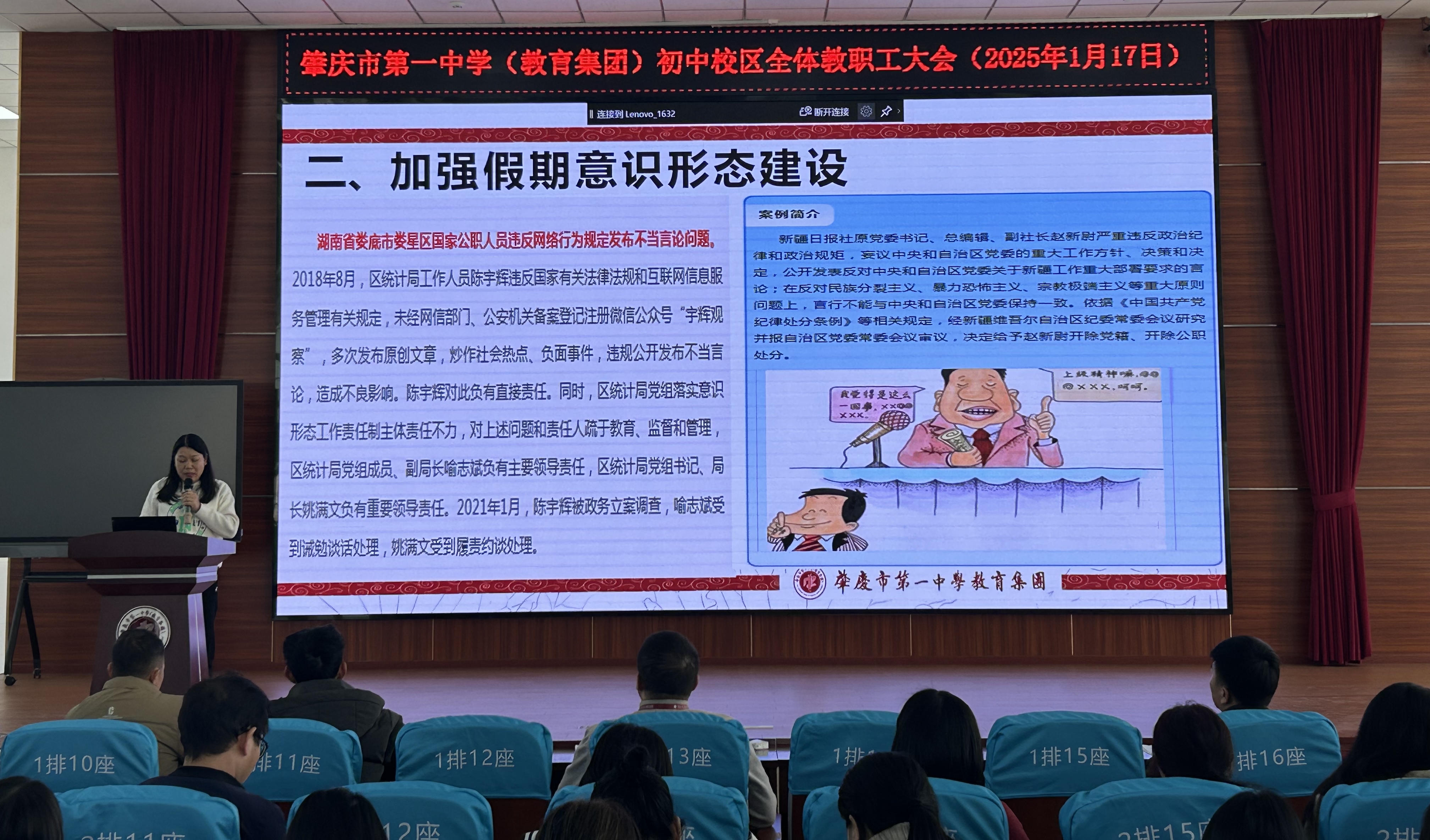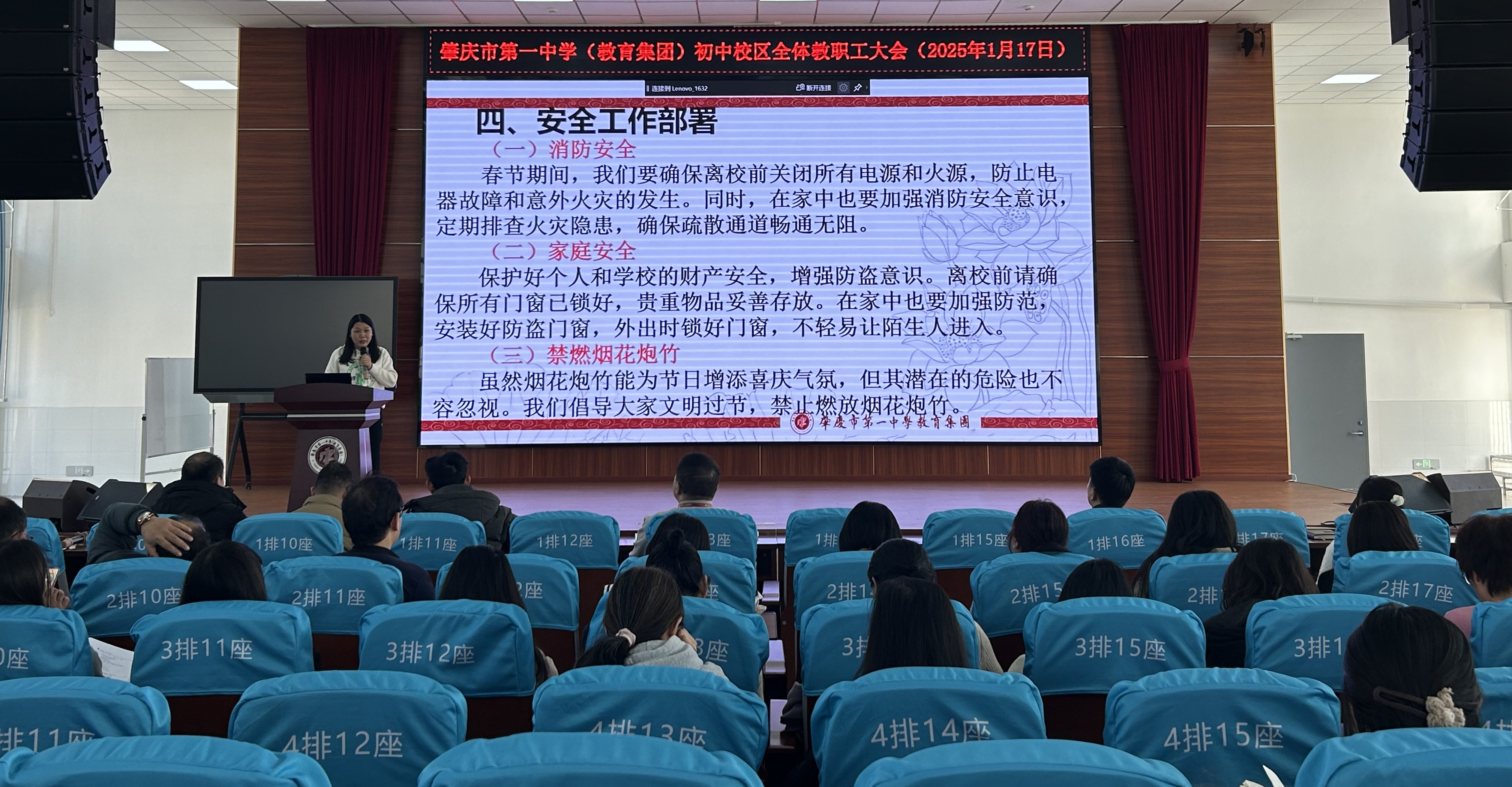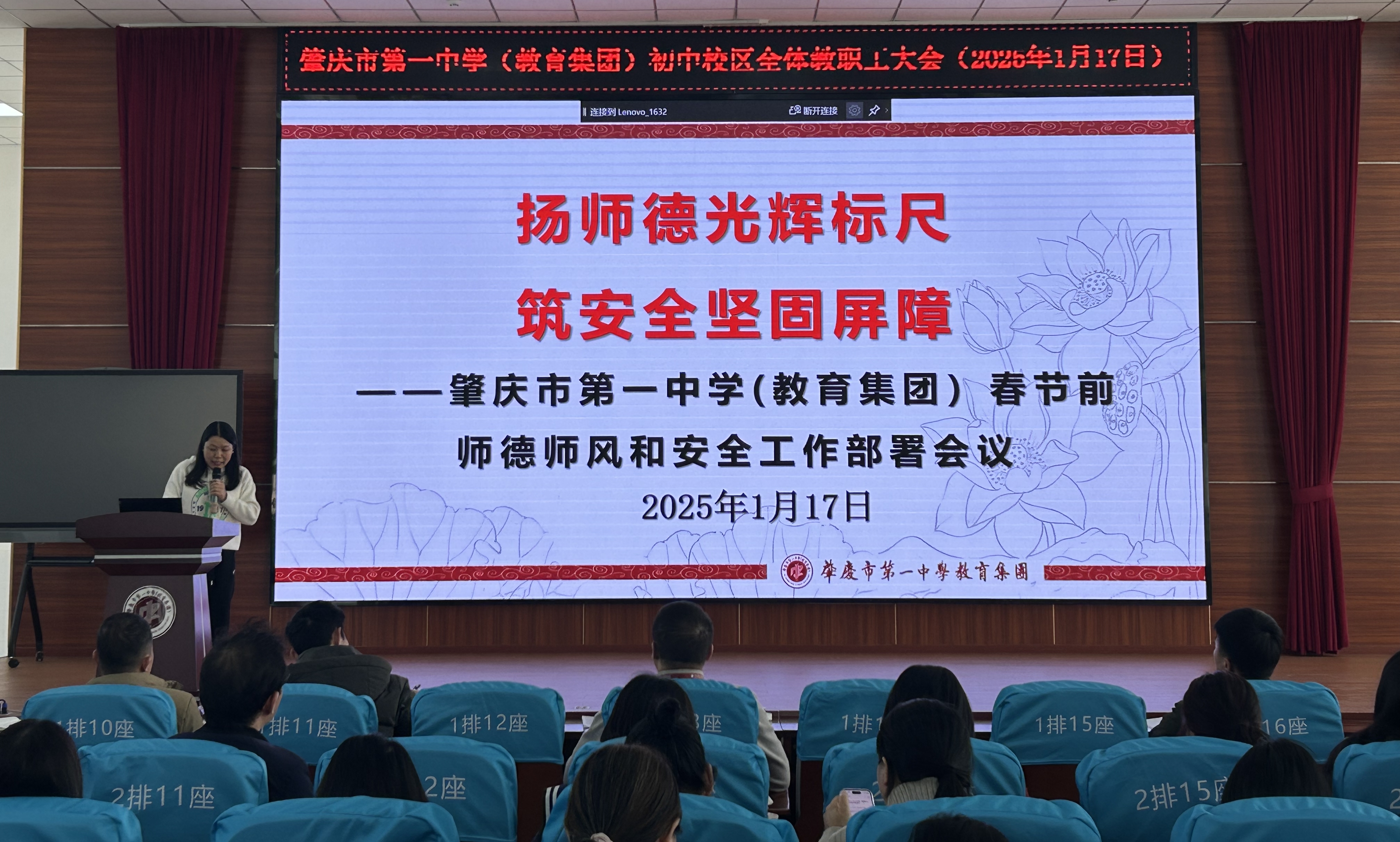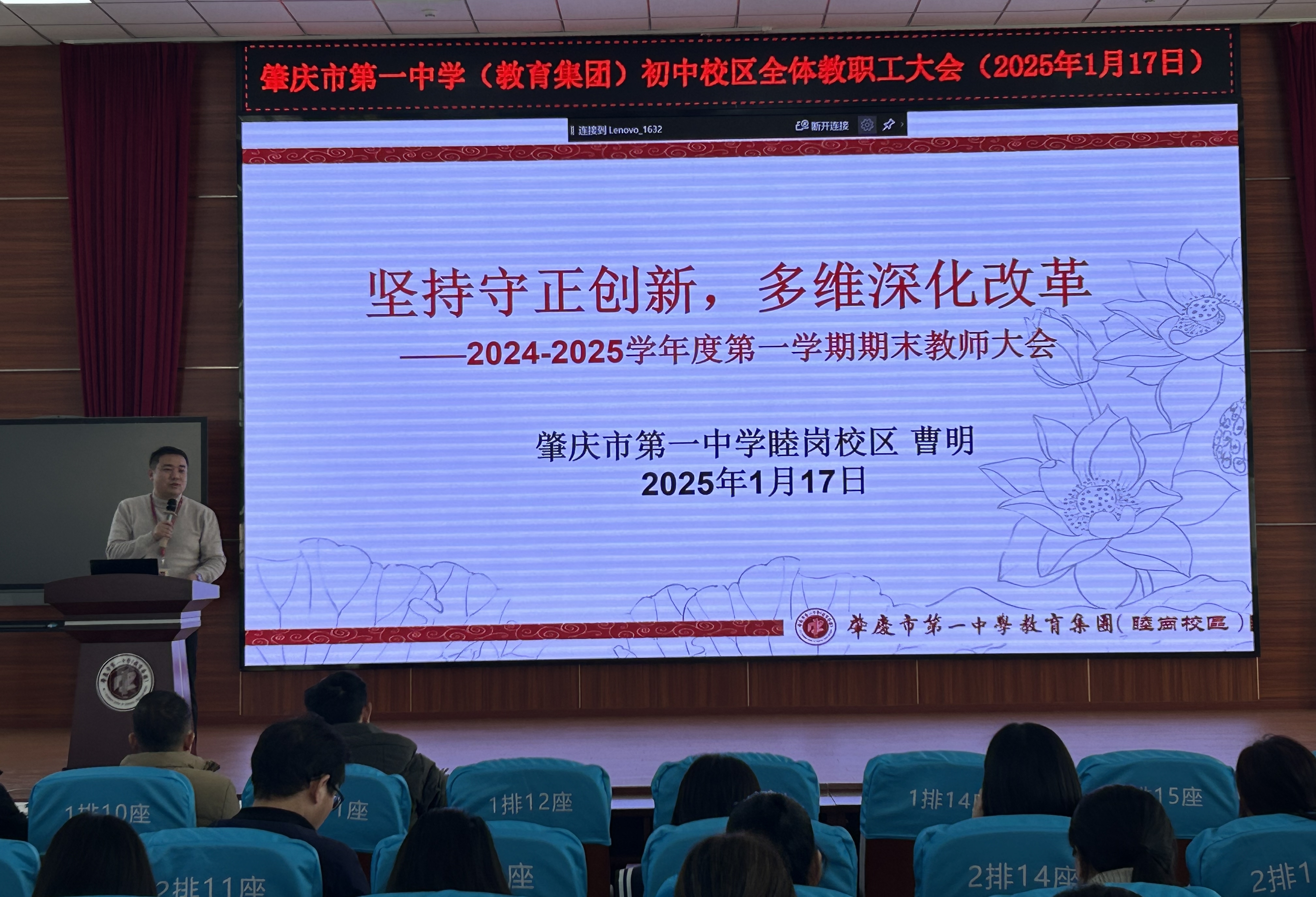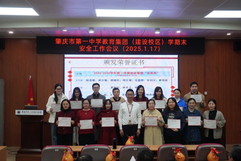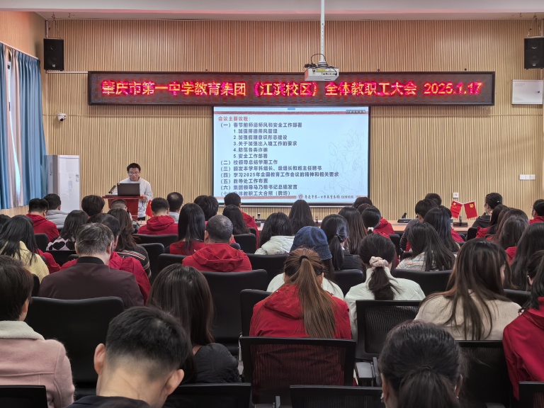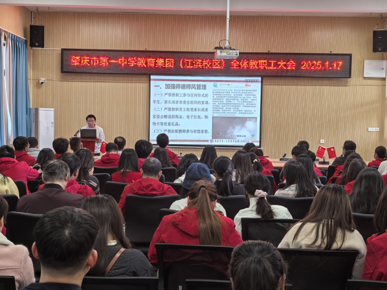 本次学期末教师大会,是一次总结经验、凝聚力量的大会。肇庆市第一中学(教育集团)初中部全体教师将以更加饱满的热情、更加坚定的信念,在教育之路上砥砺前行,为学生的成长成才和学校的高质量发展贡献力量。