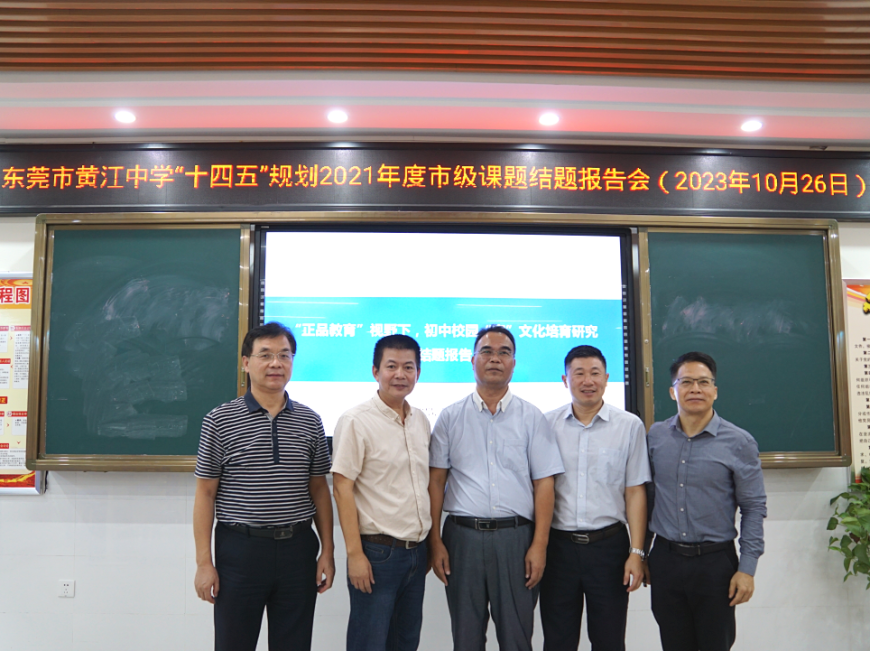 秋至宝山多秀色,可龙湖畔会佳朋。2023年10月26日上午,东莞外国语学校(集团)黄江中学在正德楼三楼会议室举行东莞市2021年品牌学校培育专项课题《正品教育”视野下,初中校园“家”文化培育研究》和东莞市教育科研2021年度专项课题《基于“双减”政策的初中英语与信息技术融合的实践与研究》的课题结题报告会。