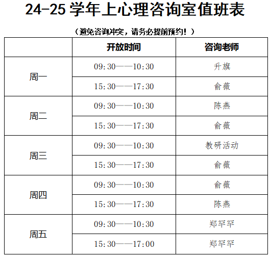 1.和心理老师通过现场预约或电话预约,商定具体的心理辅导时间。