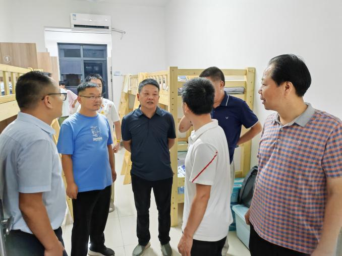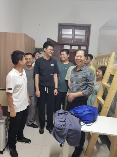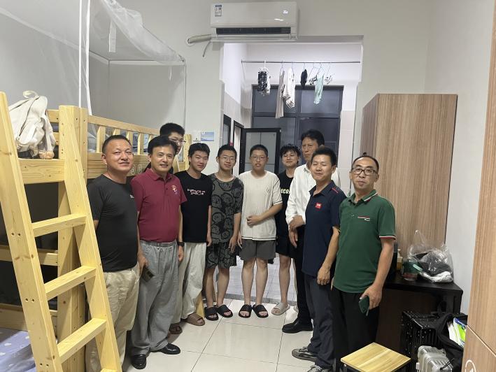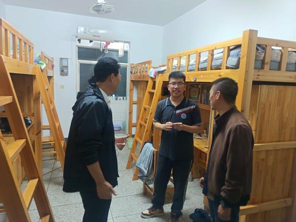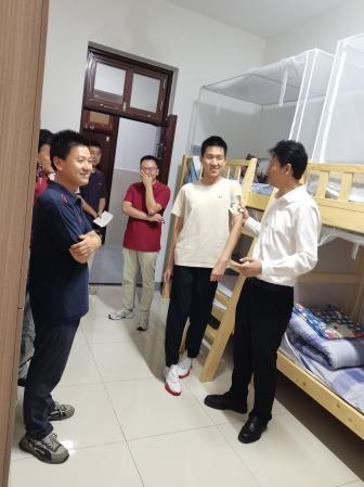 9月11日(星期四),下晚自习后,党委委员、纪委书记、奥美高中党支部书记汪小清,奥美高中高一年级主任李诚等一行,走进高一年级男生寝室,看望慰问学生,并开展交流研讨。