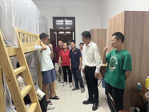 7月30日(星期三),下晚自习后,党委副书记陈刚,党委委员、副校长齐如意,奥美高中副校长李立红,带领处室年级干部、服务单位负责同志,共同查看西区学生宿舍住宿安顿情况,关心和慰问住宿学生,并召开现场会,就进一步做好工作统筹协调,提升服务单位的管理水平,充分发挥寄宿制管理效能等事宜开展研讨交流。