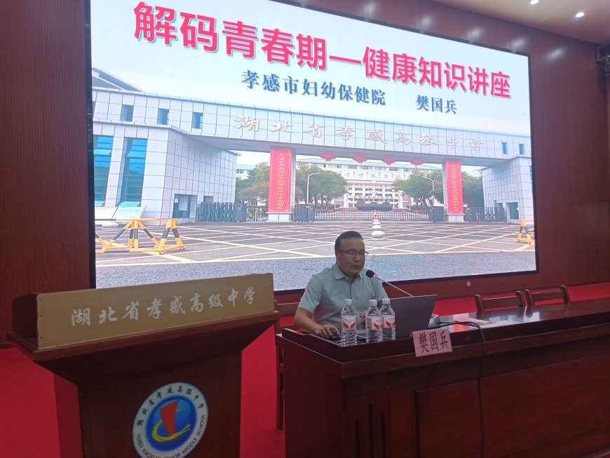 2025年9月26日(星期五)晚上20:00—20:50,一场题为“解码青春期”的专题公益讲座在孝感高中学术报告厅精彩开讲啦!学校盛情邀请孝感市妇幼保健院高新区社区卫生服务中心负责人樊国兵同志到场开讲。