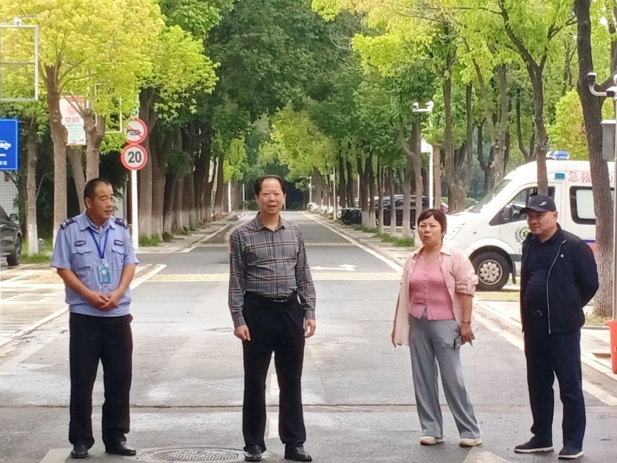 接着,检查组查看科技楼一楼内外环境卫生,对其东侧车辆停放情况进行了巡查。在东门门房,检查组对“一键报警”设备进行了安全测试。测试显示,公安值班人员在岗到位,视频声音均很清晰,设备管理运行良好。