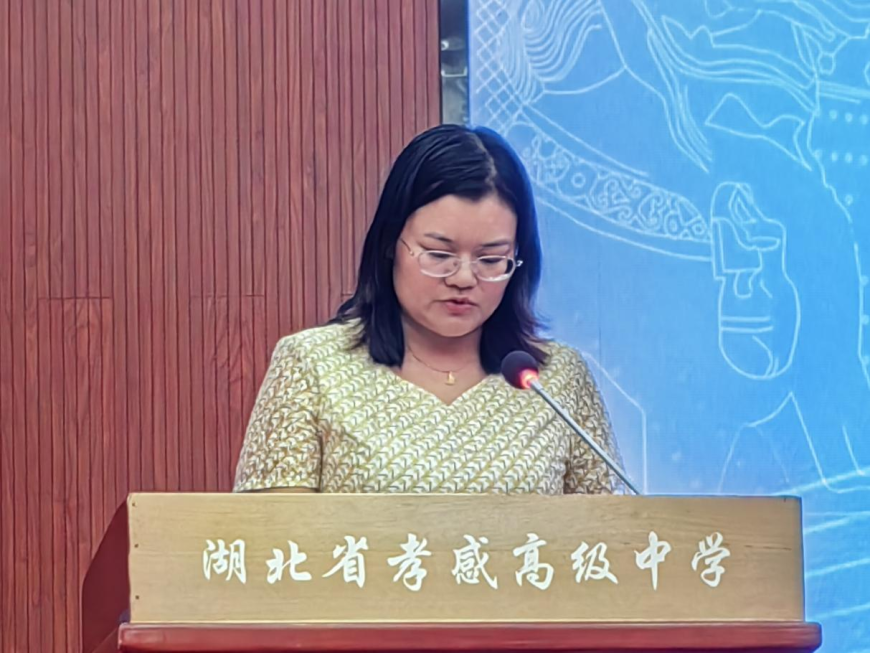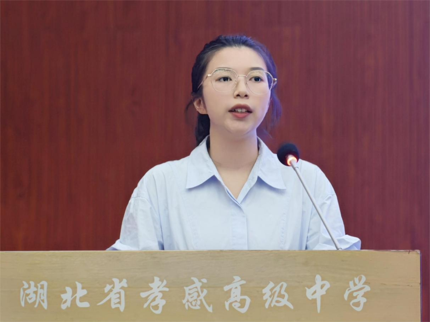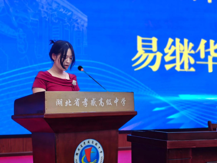 优秀青年教师代表易继华作交流发言,她深情感谢学校领导、年级组及师傅付丽凡、杜娟老师的悉心指导与培养。她结合从教三年的成长经历,分享了在集体帮助下从“站稳讲台”到“站好讲台”的蜕变历程,并表示将始终保持“空杯心态”,深耕教育沃土,以学生为中心,为学校高质量发展和孝感教育事业发展贡献青春力量。