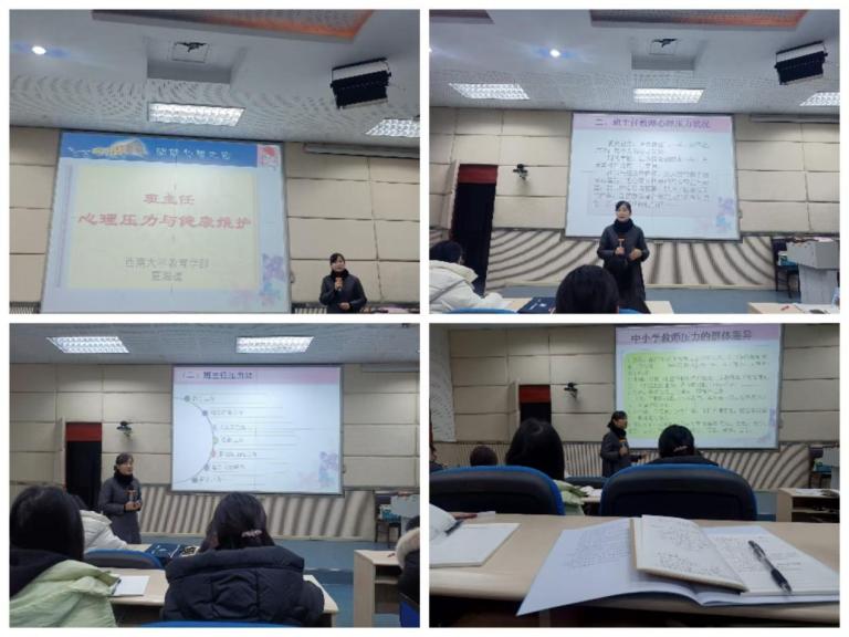 “国培计划专家库”专家夏海鹰作了《班主任心理压力与健康维护》的专题讲座。夏教授从班主任心理压力状况、班主任心理压力的原因分析、教师心理调适等方面进行了细致的讲解,告诉我们:很多时候我们的烦恼不是源于我们的遭遇,而是源于我们对世界的看法,所以要学会转换视角——学会变通——更新观念,转换视角看问题,转换观念看压力。