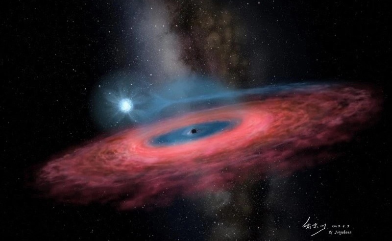 图1. 新发现的黑洞及其伴星的艺术想象图。(喻京川绘制)