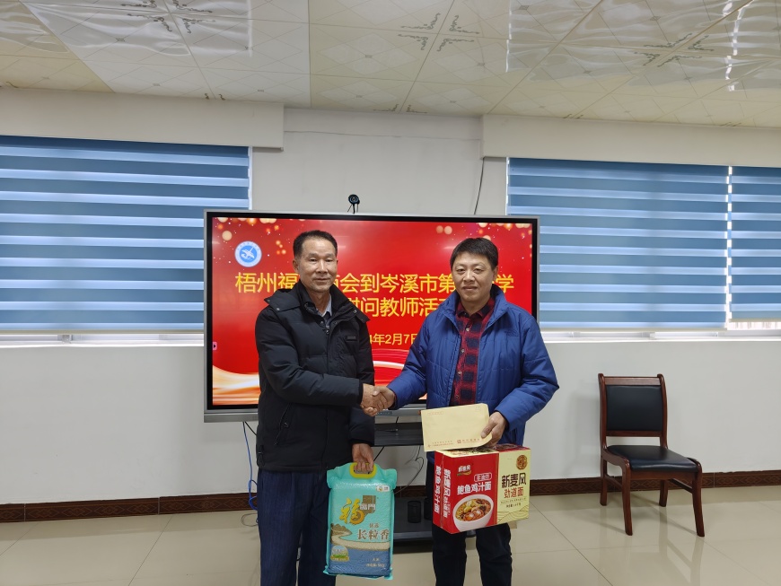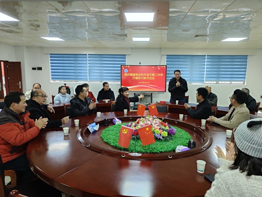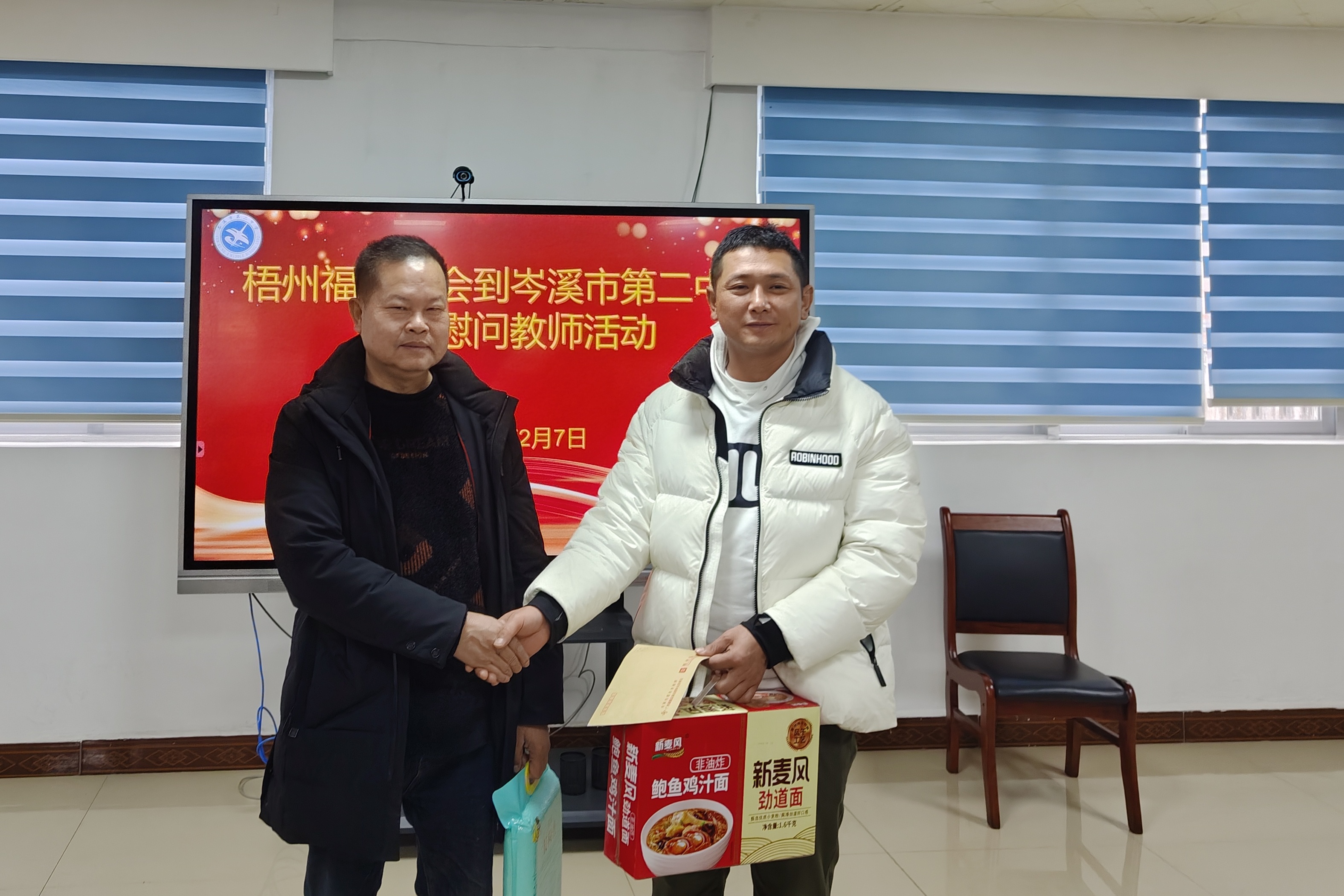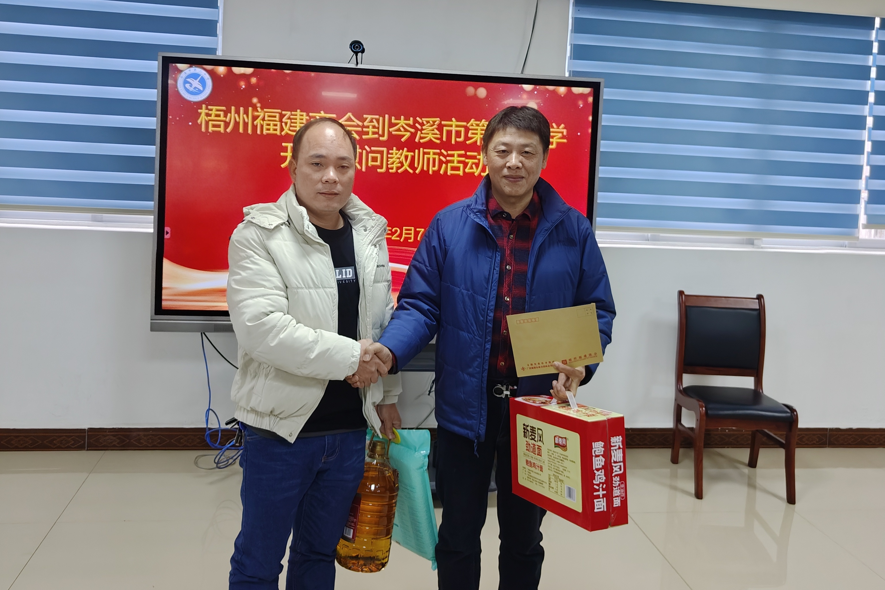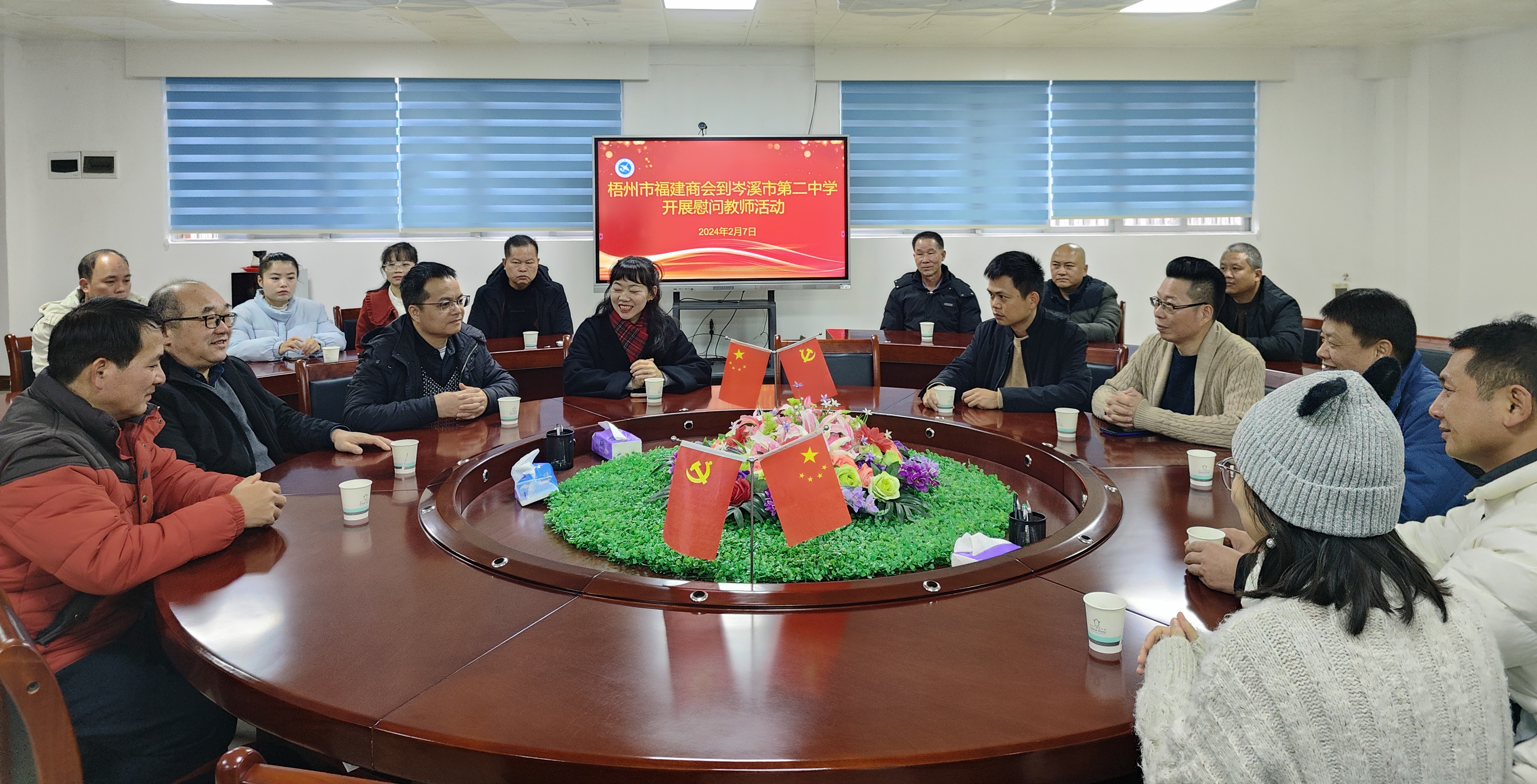 新春将至,岁寒情暖。2024年2月7日,梧州福建商会执行会长韩明捷,梧州福建商会常务副会长、秘书长林朝銮一行6人到岑溪二中开展慰问教师活动,向学校优秀教师代表、退休教师代表致以春节的问候,给他们送去亲切关怀和节日的祝福。