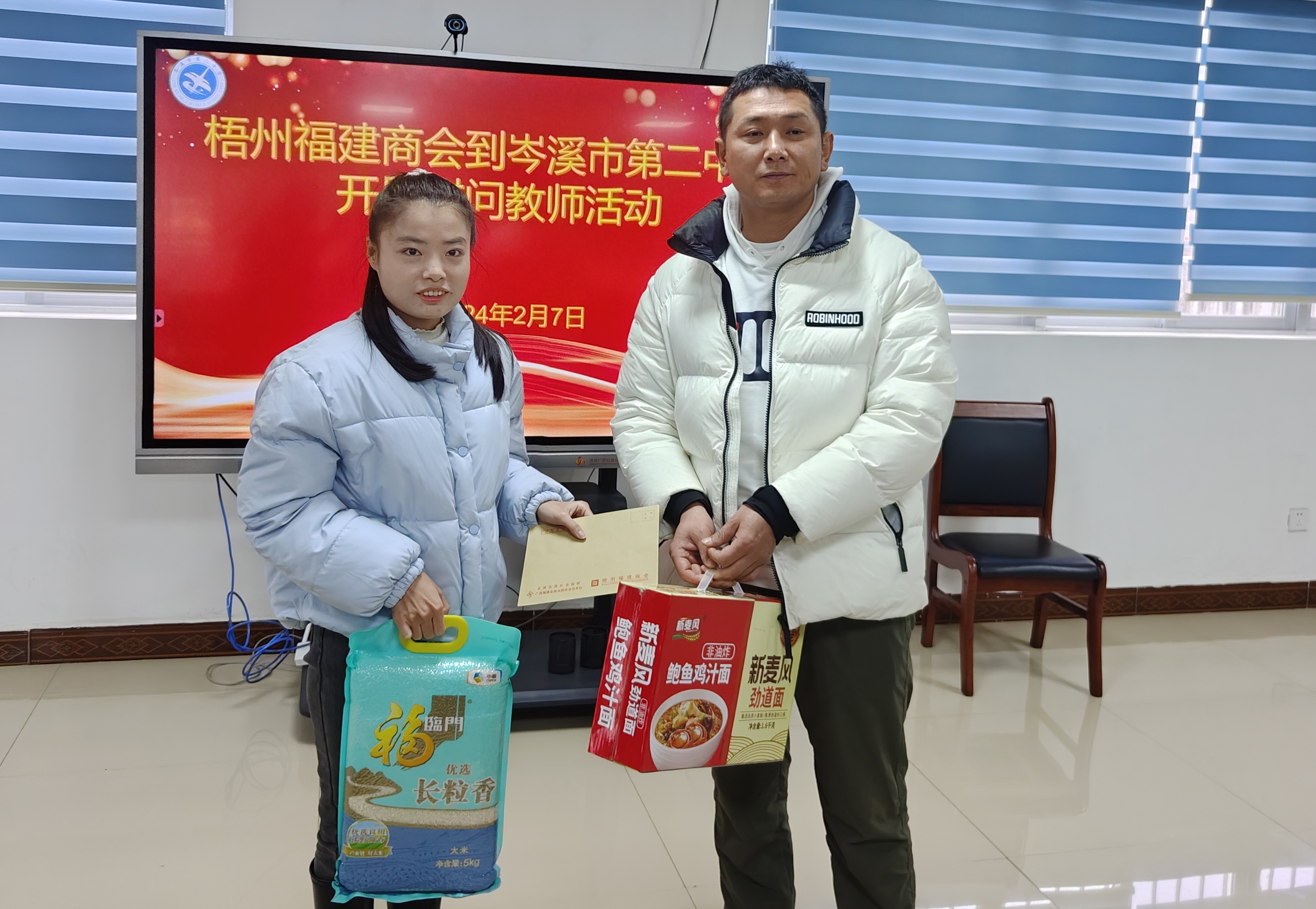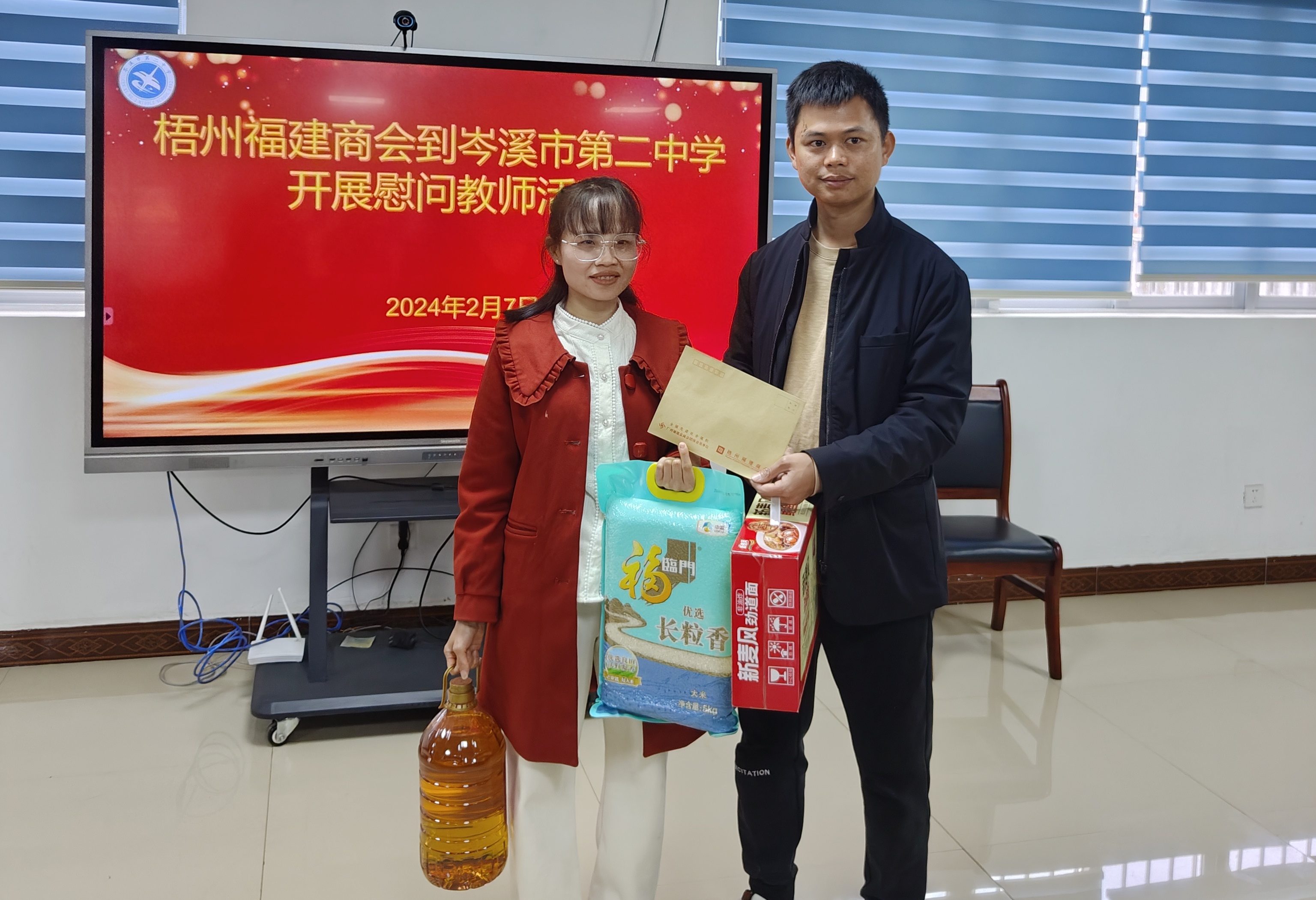 情系教育送温暖,春风化雨润桃李。这些暖心的慰问与关怀,是梧州福建商会关心教育、尊师重教的集中体现,也激励着我们把责任和重托转化为前进的动力,切实肩负起教书育人的光荣职责。今后,岑溪二中定当耕耘不辍、笃行不怠,不断提高教育教学质量水平,为学校高质量发展而不懈奋斗,谱写二中发展新篇章!