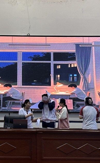 这一充满趣味的语言接龙游戏瞬间点燃现场气氛。“抓鸭子!”“抓几只?”“抓三只!” 随着此起彼伏的问答声,节奏不断加快,同学们紧绷神经、全神贯注,生怕因一时疏漏被淘汰。现场时而因某个同学的失误引发阵阵善意的哄笑,时而因连贯流畅的接龙爆发出热烈的掌声,欢快的氛围在空气中肆意流淌。