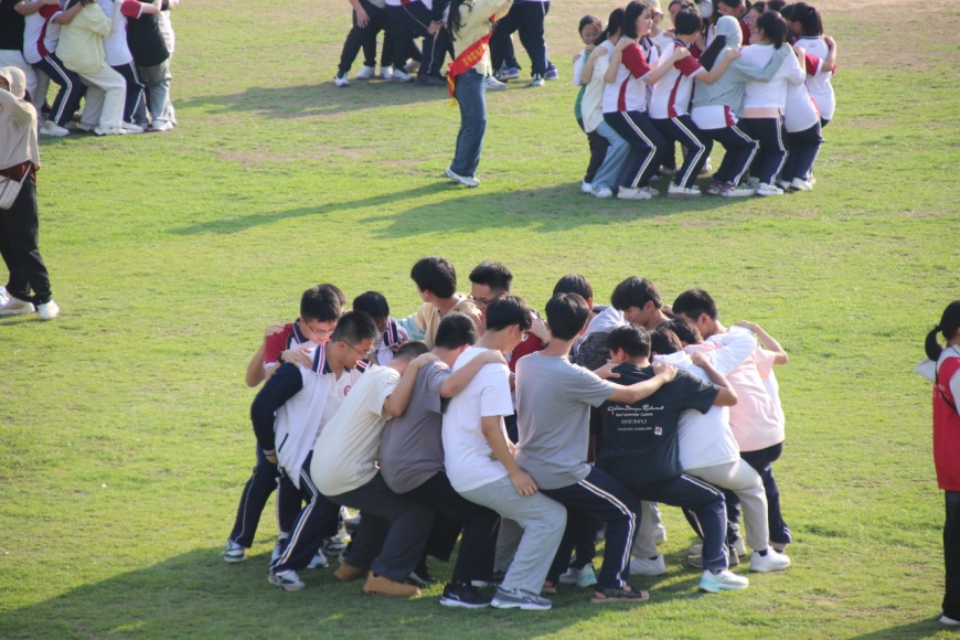每组学生手挽手围成巨大的圆圈,随着指导老师的口令,大家缓缓坐在后方同学的腿上,彼此的重量化作信任的纽带。挑战过程中,有同学因体力不支微微颤抖,身旁的伙伴立即用鼓励的眼神与话语给予支持;也有小组因节奏不一致险些溃散,却在相互调整中重新凝聚力量。当团队成功完成挑战的那一刻,欢呼声响彻整个场地,每个人都深刻感受到集体支撑带来的震撼力量。