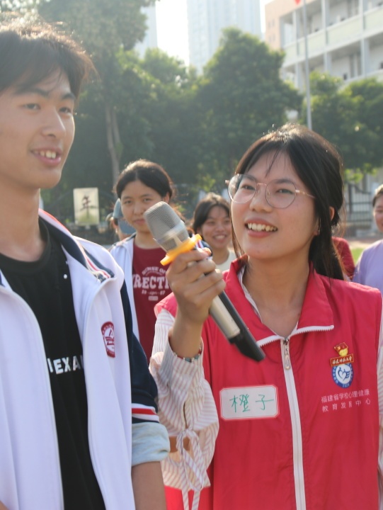 同期,福师大研究生团队带领三百名高三学生开展《“毅”路生花,心向未来》团体辅导活动。活动开始,在“携手出发,目标引航——正反口令”破冰环节中,指令声如灵动的音符骤然响起,同学们需迅速做出与指令相反的动作。现场充满此起彼伏的欢笑声,有人因反应不及手忙脚乱,有人因同伴的滑稽动作忍俊不禁,在快速反应与互动中,陌生与拘谨的坚冰悄然消融。