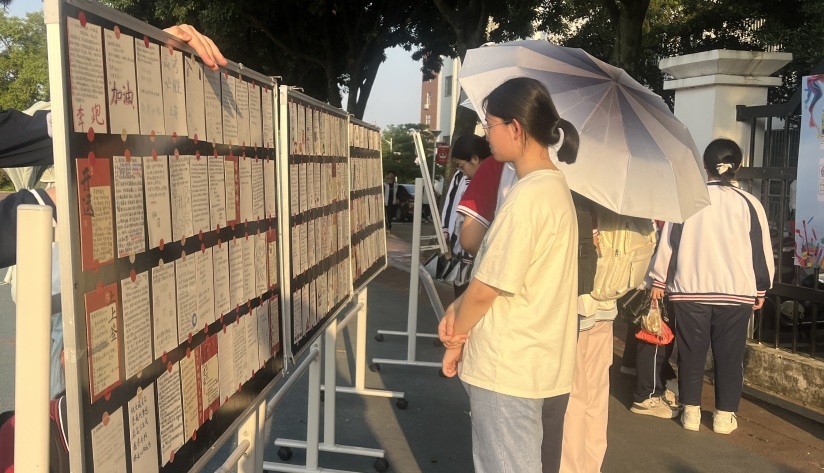 在心理健康月期间,学校特别举办了学生心理作品展,展览涵盖七八年级和高一年级创作的心理漫画,以及高一学子为高三学长学姐精心制作的祝福贺卡。心理漫画以生动笔触描绘成长中的困惑与感悟,展现学生对心理健康的独特思考;祝福贺卡上,一句句暖心话语、一幅幅手绘图案,承载着学弟学妹对高三学子的真挚祝福。展览现场,不少高三学生驻足停留,细细品读贺卡上的文字,感动之情溢于言表。这些充满爱意的作品,成为校园里一道温暖的风景线。