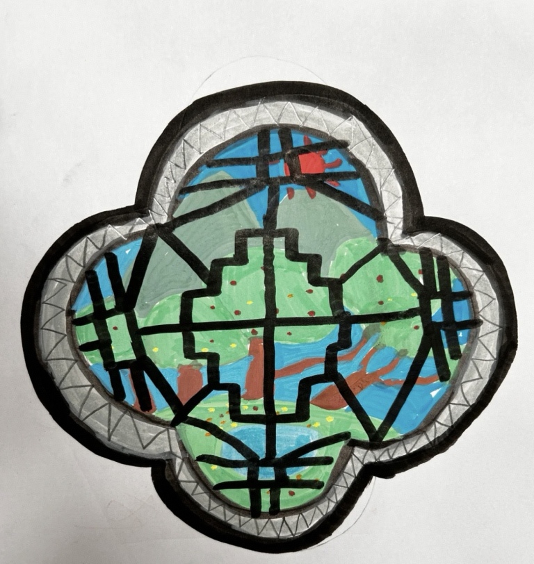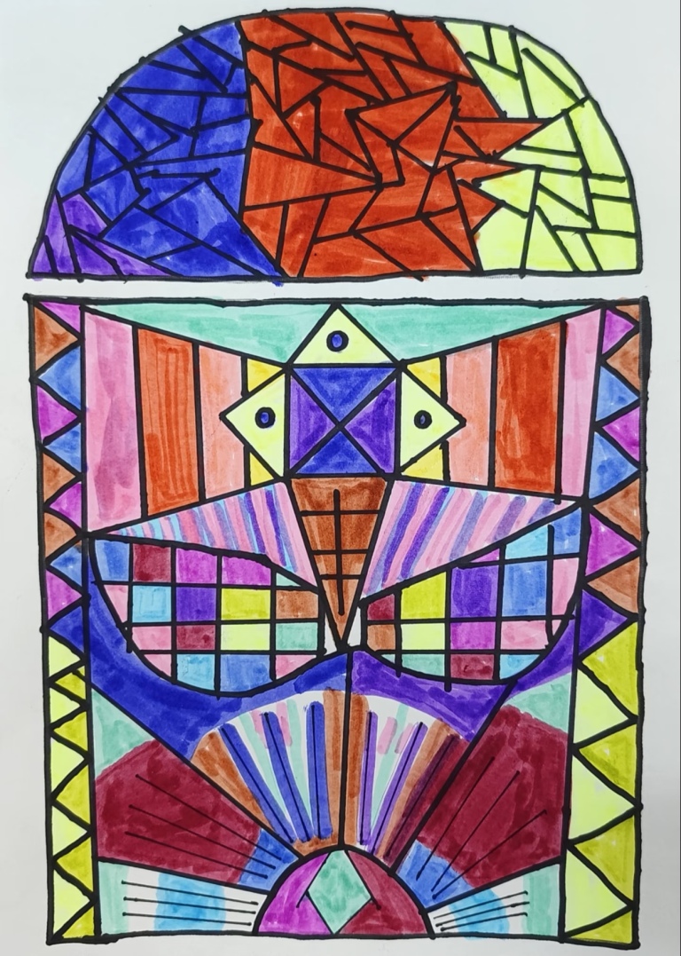 黄老师层层递进,带领学生走进“中国古窗之美”,细致讲解了空窗、漏窗、盲窗的造型特点与审美意蕴,并通过“纹样小侦探”活动,引导学生解读“平升三级”“福禄绵延”等传统纹样背后的文化寓意。课程还拓展至外国窗户设计,如西班牙巴特罗之家的曲线造型与教堂彩绘玻璃的象征意义,让学生在对比中感受中西审美的差异与融合。最后,学生化身为“小小窗户设计师”,结合所学进行创意实践,将传统元素与现代想象相结合,完成了一扇扇独具个性的窗户作品。