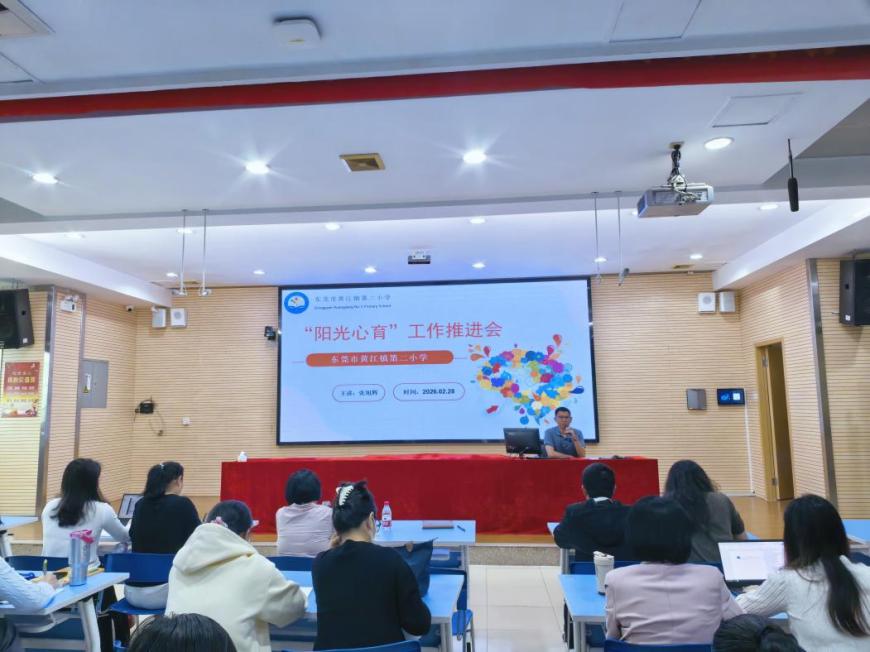 为深入贯彻落实立德树人根本任务,扎实推进学校心理健康教育工作,健全心育工作体系,切实呵护学生身心健康成长,2026年2月28日上午,东莞市黄江镇第二小学召开“阳光心育”工作推进会。全体教职工参会,进一步凝聚“全员心育”共识,明确下一阶段工作方向。