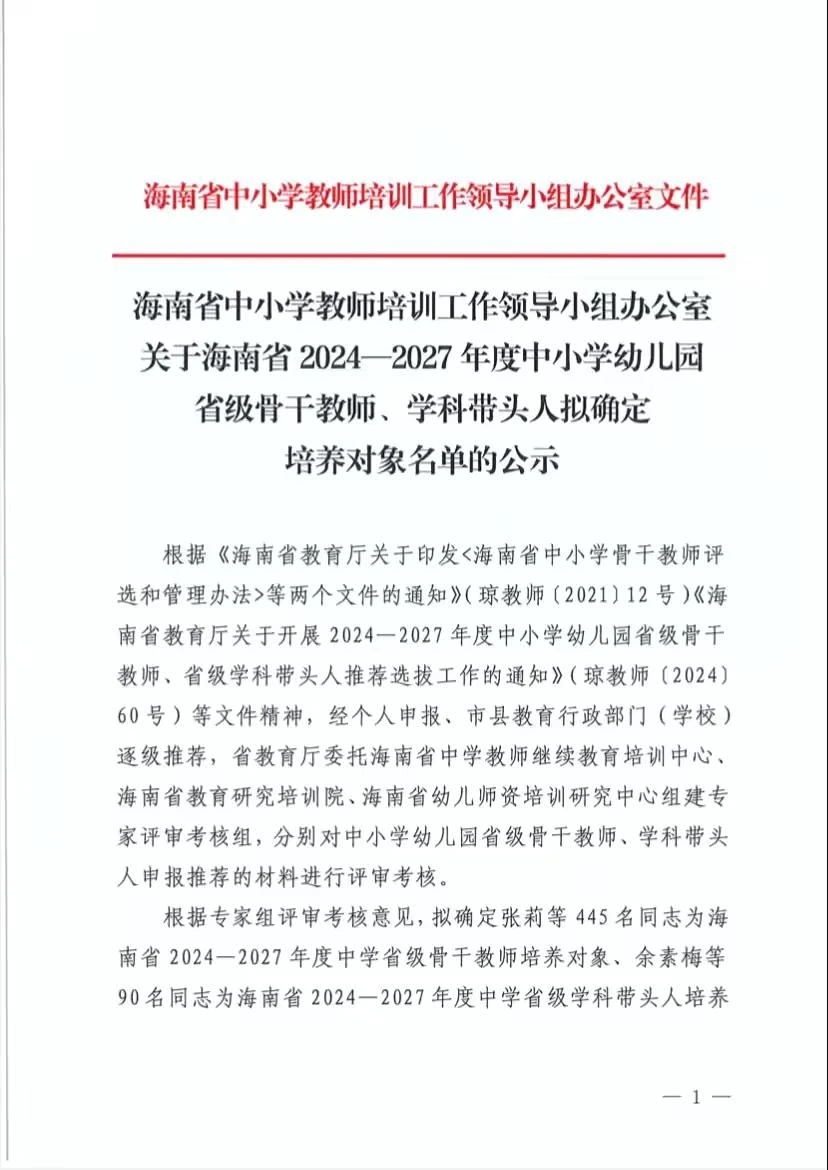 根据专家组评审考核意见,我校共有1名优秀教师成功入选为省级学科带头人,4名优秀教师入选为省级骨干教师培养对象。这不仅是对他们在教育教学领域卓越贡献的认可,更是对我校师资队伍建设的高度肯定。